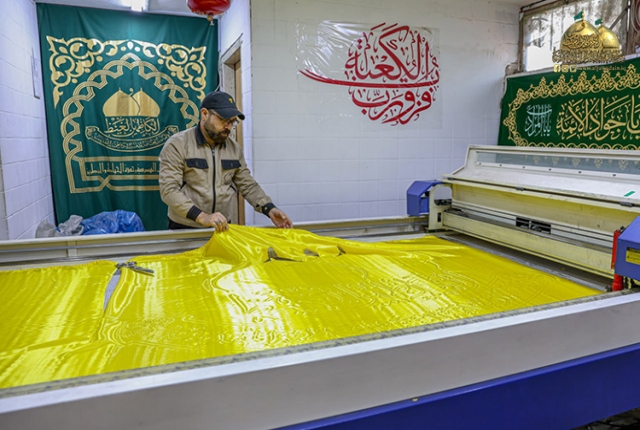 حين تصافح الإبرة خيوط الولاء، وتنسج أنامل الإخلاص رايات العزاء، في أبهى صور الوفاء، تتجلى روح الخدمة المخلصة في الاستعداد لإحياء الذكرى الأليمة لاستشهاد إمام الصبر موسى بن جعفر الكاظم "عليه السلام"، لذا انجزت وحدة الخياطة والتطريز التابعة لقسم الشؤون الهندسية في العتبة الكاظمية المقدسة أعمال صناعة اللافتات الكبيرة والكلمات النورانية التي ستوضع على أعمدة الطارمات وأسوار الصحن الكاظمي الشريف في صورة تعكس الهيبة والقدسية لهذا المقام الطاهر في أيام العزاء والحِداد.