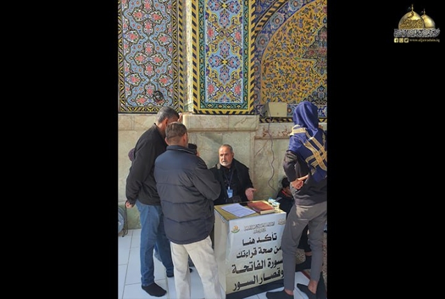 وأوضح أن الحملة تهدف إلى استثمار تلك الحشود في تعليمهم القراءة السليمة لسورة الفاتحة وقصار السور، والتركيز على مراعاة الحركات والسكنات والمدود والتوقفات، وسائر أحكام التلاوة وتقييم قراءة الزائر عن طريق الاستماع لهُ وتعريفه بمواطن الخطأ إن وجد من خلال استمارة خاصة يتم تأشير الأخطاء التي يقع فيها وتبيانها للقارئ والقارئة وتدريبهم على القراءة الصحيحة، حيث كان هناك تفاعل ورغبة كبيرة وإقبال حقيقي من قبل للزائرين الكرام من جميع الفئات العمرية.