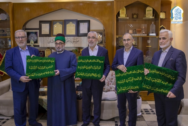 في أجواء مفعمة بالإيمان والولاء لأهل بيت النبوة "عليهم السلام"، تشرّف الأمين العام للعتبة الكاظمية المقدسة، خادم الإمامين الكاظمين الجوادين الدكتور حيدر حسن الشمّري بتسلم الراية الشريفة لكريم أهل البيت الإمام الحسن المجتبى "عليه السلام" التي تم صناعتها في ورش العتبة الحسينية المقدسة لترفع في سارية العتبة الكاظمية المقدسة إلى جانب رفعها في العتبات المقدسة الأخرى، في ليلة واحدة إحياءً لذكرى ولادته "عليه السلام" في الخامس عشر من شهر رمضان المبارك، بعد تشرّف الأمين العام والوفد المرافق لهُ بزيارة سيد الشهداء الإمام الحسين، وأخيه المولى أبي الفضل العباس "عليهما السلام"، وتلبية دعوة المأدبة الرمضانية التي أقامتها الأمانة العامة للعتبة العباسية المقدسة، بحضور الأمناء العامين للعتبات المقدسة في العراق (العلوية والحسينية والعسكرية).