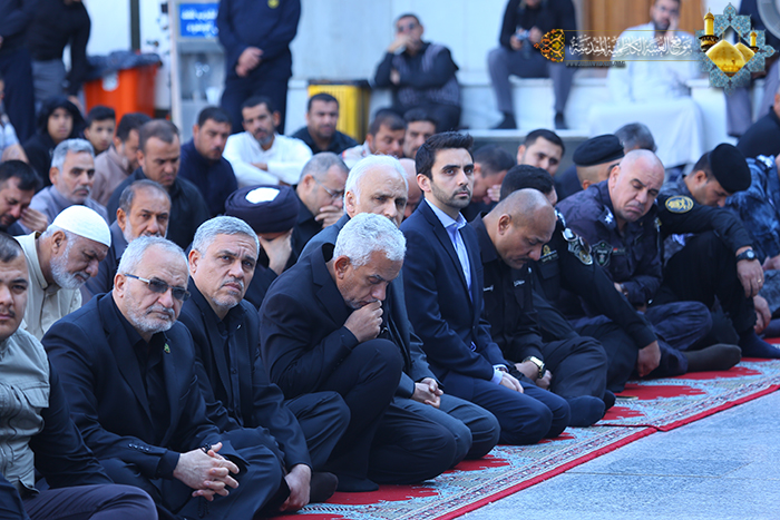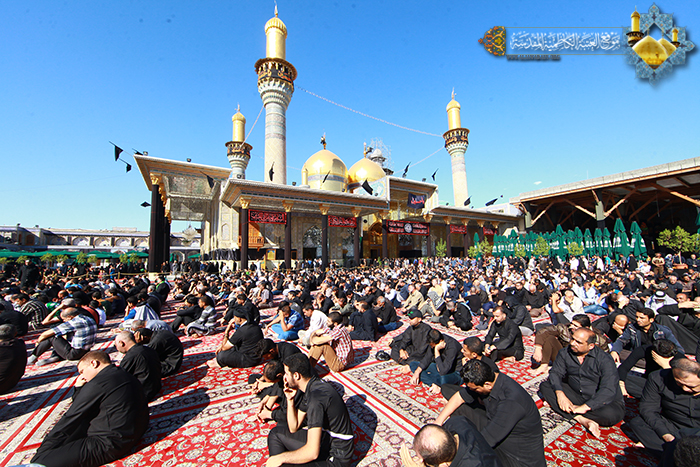 شهد الصحن الكاظمي الشريف أجواءً إيمانية ملأها الحزن والأسى استذكاراً لفاجعة الطف الأليمة التي سبي بها أهل بيت النبوة باستشهاد سيد شباب الجنة الإمام الحسين وأهل بيته الأطهار وأصحابه الأبرار"عليهم السلام" في يوم عاشوراء يوم الشهادة والتضحية والفداء الذي سُطرت فيها أروع الصور لإعلاء كلمة لا إله إلا الله محمد رسول الله بوجه الظلم والطغيان وإرساء القيم الإنسانية, وبهذه المصاب الجلل أقامت الأمانة العامة للعتبة الكاظمية المقدسة مراسم خاصة ليوم العاشر من محرم الحرام بحضور الأمين العام للعتبة الكاظمية المقدسة أ.د جمال الدباغ وأعضاء مجلس الإدارة وسماحة الشيخ حسين آل ياسين وكيل المرجعية الدينية العليا فضلاً عن حضور عدد من الشخصيات الدينية والاجتماعية وجمع غفير من زائري الإمامين الجوادين "عليهما السلام" للمشاركة في مراسم العزاء، استهلت بقراءة تلاوة أيٍ من الذكر الحكيم شنف بها قارئ العتبة المقدسة السيد عبد الكريم قاسم أسماع الحاضرين بعدها ارتقى المنبر الخطيب الحسيني سماحة السيد جعفر المشعشعي ليقرأ المقتل الحسيني، وسرد القصة الكاملة لواقعة الطف واستشهاد أبي عبد الله الحسين "عليه السلام"، حينها ضج الحاضرون بالنحيب والبكاء حزناً وتأسياً وولاءً لأئمة أهل البيت "عليهم السلام ", بعدها توجه الحاضرون بالدعاء إلى المجاهدين المرابطين في الثغور وساحات القتال المدافعين عن بلدنا ومقدساتنا بأن يثبت أقدامهم ويسدد خطاهم ويكللها بالنصر المؤزر . وأعقب هذه المراسم بعد صلاتي الظهرين قراءة زيارة الإمام الحسين بصوت القارئ عامر الخفاجي .