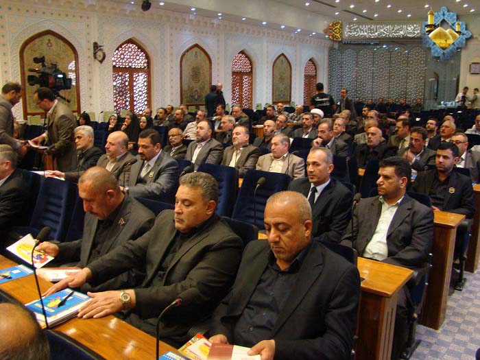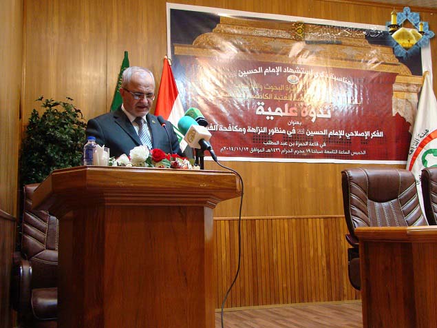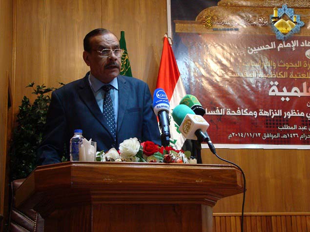 حرصت العتبة الكاظمية المقدسة على احتضانها ورعايتها للعديد من الندوات والمؤتمرات لأجل إثراء الساحة الثقافية والعلمية والمعرفية والتي تسعى من خلالها أن تساهم في عملية التغيير والتطوير النوعي لبناء المجمتع العراقي والإسلامي، وتسعى لتحقيق النزاهة ومكافحة الفساد المستشري في مفاصل المؤسسة الحكومية، الذي أمسى ظاهرة اجتماعية سيئة الصيت، وبالأحرى جريمة رسخت جذورها العميقة في نفوس وسلوك البعض من موظفيها، لذا فقد كرست الأمانة العامة للعتبة الكاظمية المقدسة اهتمامها لوضع الخطط الكفيلة لمعالجة الفساد بشتى أشكاله وأنواعه وكيفية الوقاية منه وتصدي الأجهزة الرقابية له وفرض العقوبة الصارمة على مرتكبيه من أجل خلق مجتمع ينعم بالهدوء ويرتقي للسلام والأمن والأمان، انطلاقاً من الفكر الإيماني والقيم الإنسانية التي أكد عليها أئمة الهدى "عليهم السلام"، لذا استضافت قاعة سيد الشهداء الحمزة بن عبد المطلب "عليه السلام" في رحاب الصحن الكاظمي الشريف صباح الخميس 19 محرم الحرام 1436هـ الموافق 13/11/2014م الندوة العلمية التي أقامتها هيئة النزاهة بالتعاون مع العتبة الكاظمية المقدسة والموسومة: " الفكر الإصلاحي للإمام الحسين (عليه السلام ) في منظور النزاهة ومكافحة الفساد " تزامناً مع ذكرى عاشوراء الأليمة واستشهاد أبي الأحرار الإمام الحسين "عليه السلام" بحضور أ . د "جمال عبد الرسول الدباغ" الأمين العام للعتبة الكاظمية المقدس وأعضاء مجلس الإدارة وعدد من مدراء الدوائر الحكومية في مدينة الكاظمية وكوكبة من موظفي هيئة النزاهة وخَدَمَة الإمامين الجوادين، استهلت الندوة بتلاوة آيات مباركات من الذكر الحكيم شنف بها قارئ العتبة الحاج "همام عدنان " أسماع الحاضرين بعدها ارتقى المنصة الأمين العام للعتبة الكاظمية أ . د "جمال الدباغ" وألقى كلمة بهذه المناسبة ورد فيها : " إن الإمام الحسين "عليه السلام" هو الامتداد المشرق للدوحتين المحمدية والعلوية، وها نحن في رحابه نستذكر دائماً أنه خرجَ من أجل الإصلاح في المجتمع، وبذل كلّ شيءٍ من أجل ذلك، فكان هذا الخلود الأبدي، وعلينا أن نقف معه من أجل الإصلاح، مستمدين قوتنا من روحه وعزيمته وتضحياته. وعلى محبي الإمام الحسين "عليه السلام" أن يجسدوا صرخته الخالدة: هيهات منا الذلة بأن لا يذلوا أنفسهم باتباع هواها وإعطائها شهواتها ومنها المال"