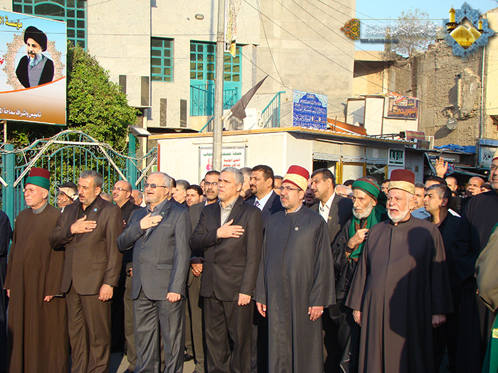 أحيا خَدَمَة العتبة الكاظمية المقدسة الذكرى الأليمة لاستشهاد سيد العابدين وسلالة الوصيين الإمام علي بن الحسين "عليه السلام" عصر الأربعاء 19/11/2014م بحضور الأمين العام للعتبة الكاظمية وعدد من أعضاء مجلس الإدارة، حيث تجمهر المعزون عند حسينية آل الصدر في شارع باب المراد وانطلقوا بمسيرة ولائية حاشدة معلنين فيها عن حزنهم بهذا المصاب الجلل، مرددين خلالها الهتافات والردات ومستذكرين فيها فاجعة استشهاده ومظلوميته "عليه السلام"، واختتمت بمجلس للعزاء الحسيني مواساةً فيه حفيديه الإمامين الجوادين "عليهما السلام" بهذه المصيبة الراتبة، وفي ختامها ابتهل المعزون إلى الباري عز وجل أن يحفظ العراق وشعبه من كل سوء والنصر السديد لقوات الحشد الشعبي وهم يدافعون عن حرمة مقدساتنا .