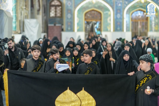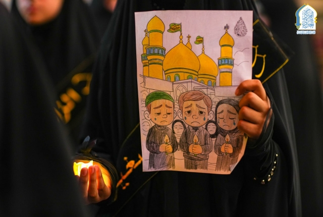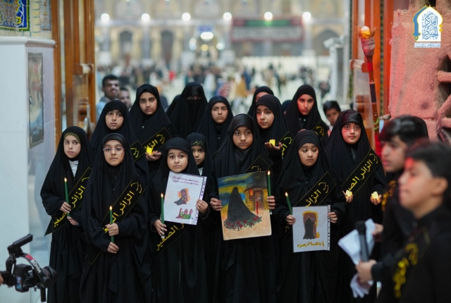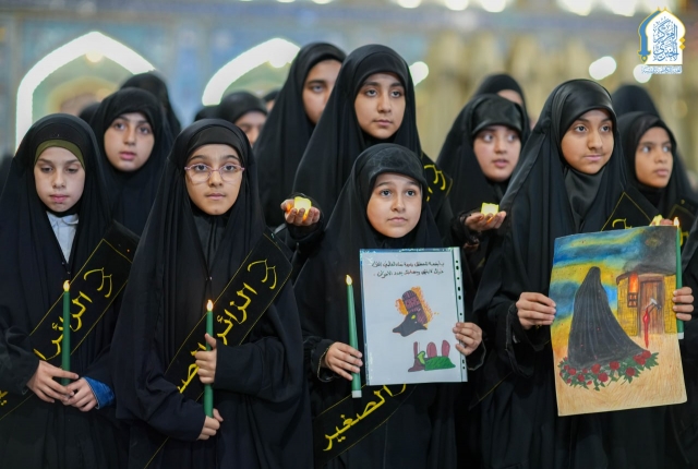 وشارك فيها جمع من أطفال المُلتقى حاملين الشموع تعبيراً عن الحزن والمواساة لمصيبة آل النبوة "عليهم السلام"، فيما رددت المراثي التي ارتسمت معها على وجوههم معاني الفقد، واستحضرت قلوبهم الطاهرة مشاهد الفجيعة التي حلّت بالبيت العلوي.