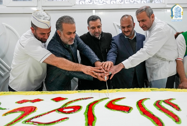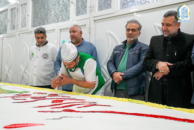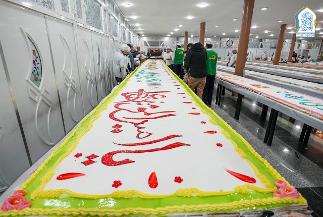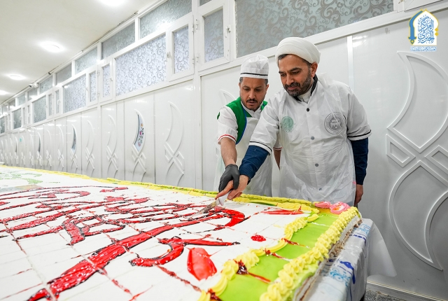 احتفاءً بذكرى ولادة تاسع الأقمار الإمام محمد بن علي الجواد "عليه السلام"، وضمن أجواءٍ إيمانية غامرة بالمحبة والفرح والولاء، قامت العتبة الكاظمية المقدسة بصناعة وتجهيز كيكة الولادة المباركة، وذلك ضمن خدمات الضيافة المقدّمة لزائري الإمامين الكاظمين الجوادين "عليهما السلام".