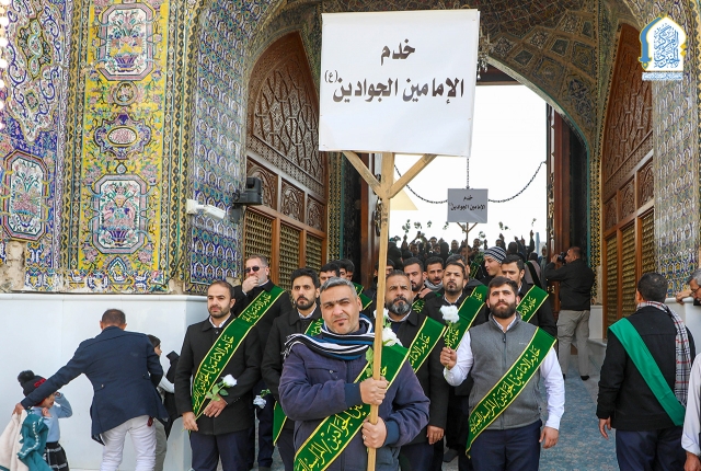 وشهدت المسيرة مشاركة خدّام العتبة المقدسة وجمع من الزائرين الكرام، صدحت خلالها الحناجر بالهتافات والردّات الولائية التي عبّرت عن عمق الارتباط والولاء للإمامين الكاظمين الجوادين "عليهما السلام"، مجددةً العهد على المضيّ بنهجهم المبارك، واستلهام قيمهم في خدمة الدين والمجتمع.