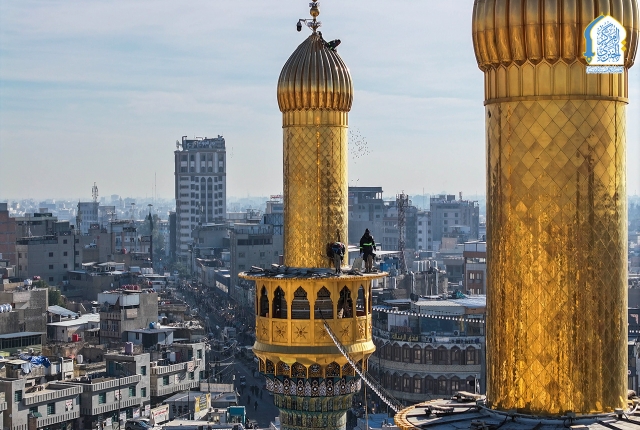 أعمال التنظيف والجلي تشهدها مآذن وقبتا حرم الإمامين الكاظمين "عليهما السلام"
