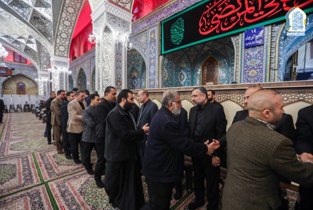 تكريماً وتخليداً لعلم من أعلام الأمة وقادتها، ووفاءاً وعرفاناً لرمز من الرموز الدينية سماحة آية الله العظمى السيد علي الحسيني الخا_من_ئي "رضوان الله عليه" الذي ارتقى شهـ.ـيداً وقائداً، ومقداماً وحكيماً، ومؤمناً شامخاً مُلبياً نداء ربه ملتحقاً بقافلة الشهداء السعداء، الذي ترك فينا أثراً عميقاً لا يمكن نسيانه، حين صوّر لنا تضحياته الجليلة مع ثلة طيبة من الرجال المؤمنين، من الذين نذروا أنفسهم الزكية، وبذلوا مهجهم التقية لنصرة دينهم وقضيتهم وعقيدتهم السمحاء، لم يأبهوا للظلم والاستبداد الذي وقع عليهم من قبل غطرسة الكفـ.ـر والطغيـ.ـان، لأنهم أهل للحق وإحقاقه في الأرض، إذ أُترعت قلوبهم بالإيمان والشغف بحُب أهل بيت النبوة "عليهم السلام" وطرّزوا بدمائهم الطاهرة ثوب النصر والكرامة، ووفاءً وعرفاناً لفقيدنا الشهيد سماحة السيد الخا_من_ئي، ورموز الجهاد في درب العقيدة أقامت الأمانة العامة للعتبة الكاظمية المقدسة المجلس التأبيني الذي أهدي ثوابه إلى تلك الأرواح الطاهرة، وكان في استقبال المعزّين من الشخصيات الدينية والاجتماعية والزائرين الكرام بكلمات الترحيب والمواساة السيد الأمين العام للعتبة الكاظمية المقدسة، خادم الإمامين الكاظمين الجوادين الدكتور حيدر عبد الأمير مهدي، وأعضاء مجلس الإدارة الموقّر، وخدّام العتبة المقدسة.