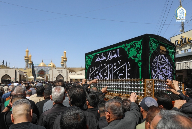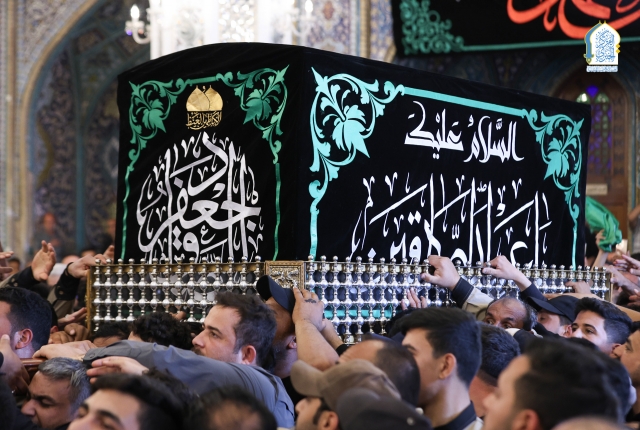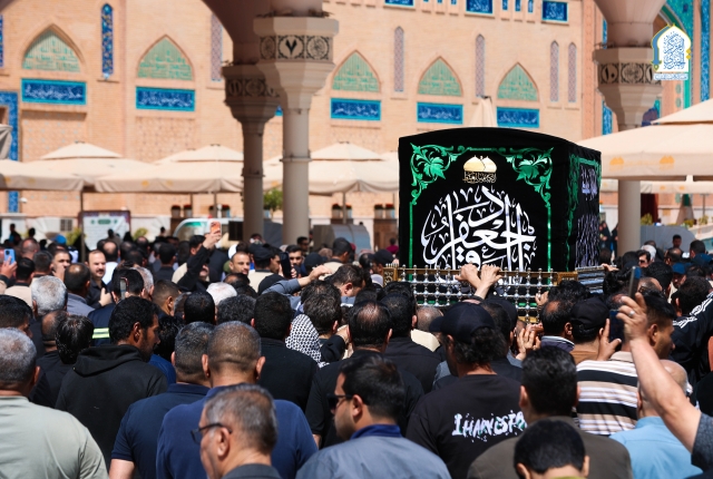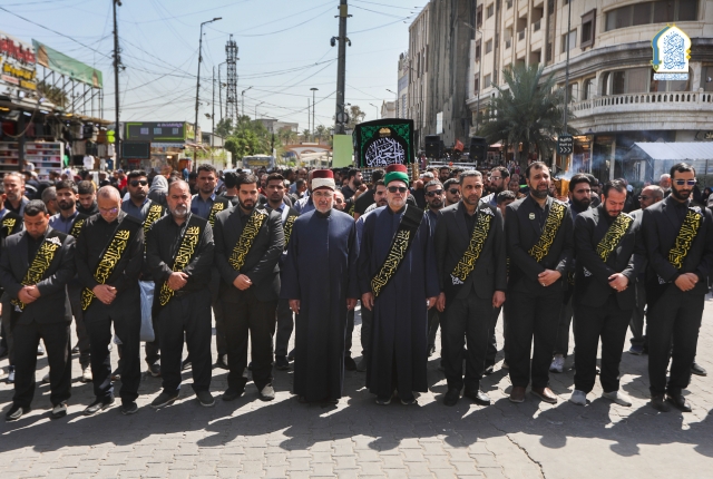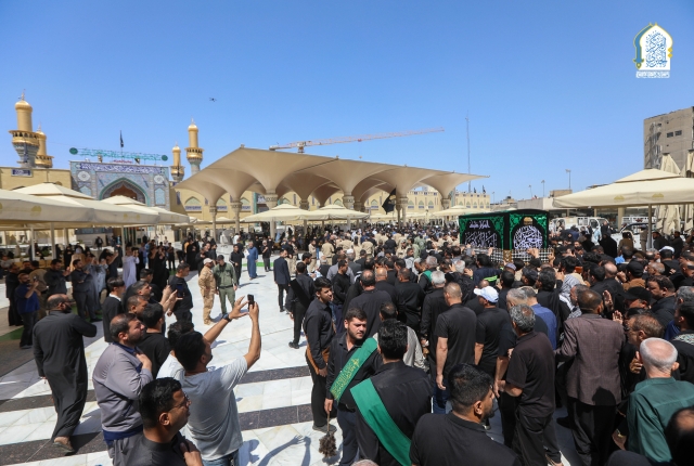 والتأمت مسيرة حشود المشيعين في رحاب الصحن الكاظمي الشريف لتختتم بمجلس تأبيني مستذكرين خلاله مآثر عميد الصادقين "عليه السلام".