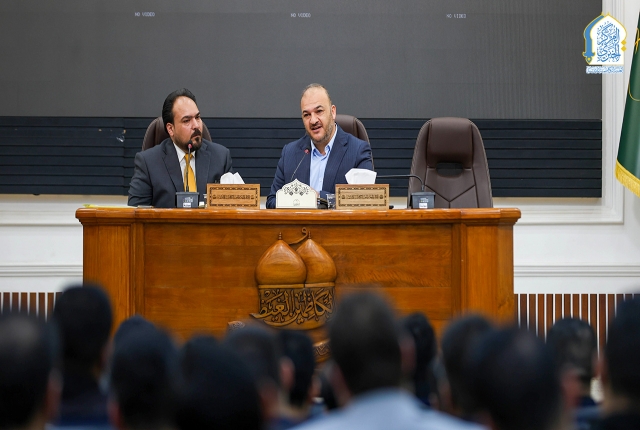 استهل نائب الأمين العام حديثه بالإشارة إلى شرف الخدمة في العتبة المقدسة، وما تمثله من مسؤولية عظيمة تستوجب أعلى درجات الإخلاص والالتزام، مؤكداً ضرورة ترسيخ المهنية في الأداء الإعلامي، ومستشهداً بقوله تعالى: (وَقُل لِّعِبَادِي يَقُولُوا الَّتِي هِيَ أَحْسَنُ)، كما شدد على أهمية تعزيز فاعلية الرسالة الإعلامية الهادفة، وتطوير أدواتها التوعوية والتثقيفية والإرشادية، بما يحقق ميزة تنافسية تسهم في ترسيخ قيم أهل البيت "عليهم السلام"، وتجسيد الرسالة الإنسانية للإمامين الكاظمين الجوادين "عليهما السلام".