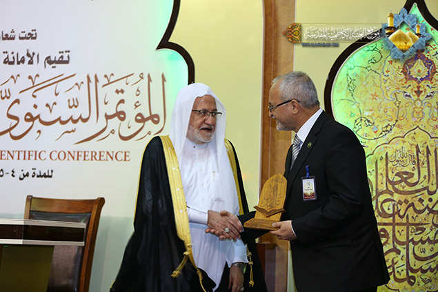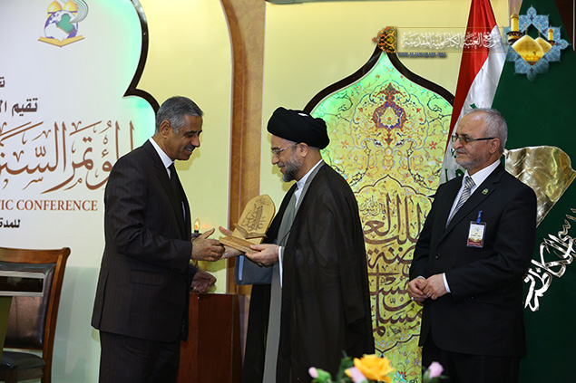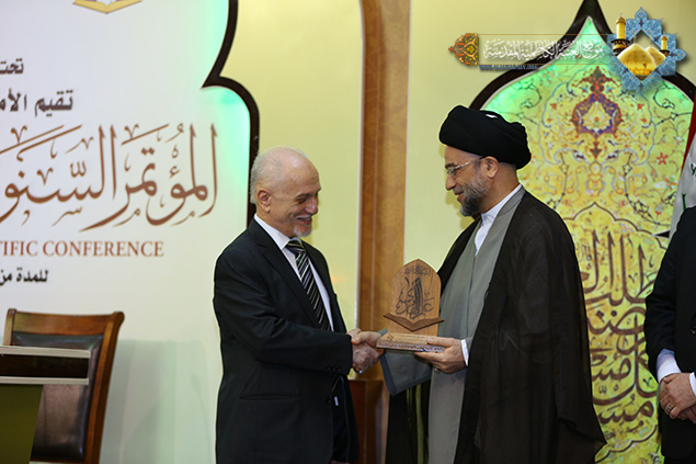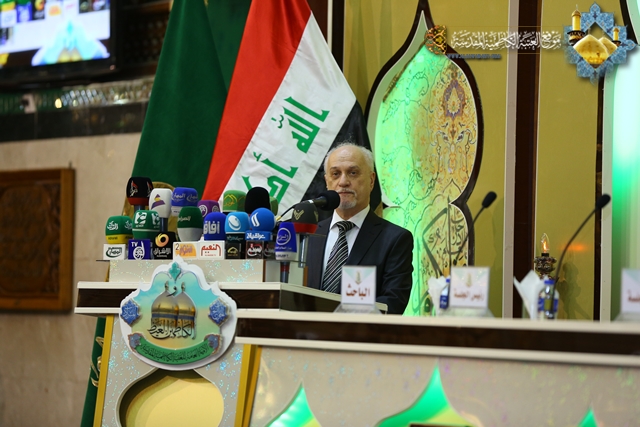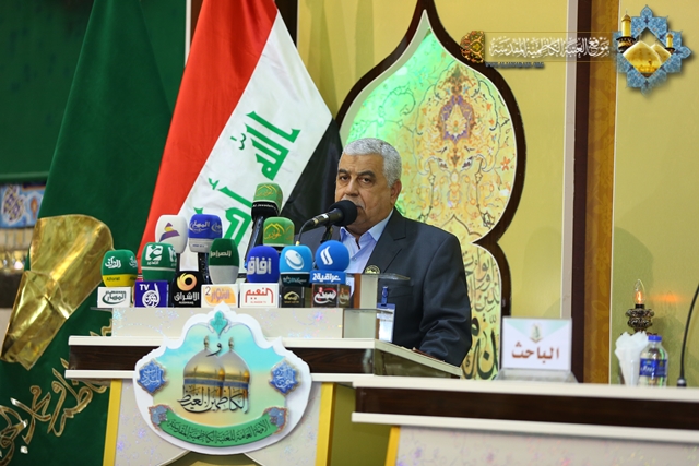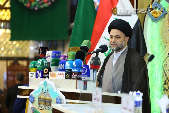 وتابع حديثه قائلاً "ينبغي على المؤسسات الأكاديمية والجامعات والمراكز البحثية والحوزات العلمية أن توحد جهودها وتكاتف في الوقت الراهن في الحفاظ على التراث الإسلامي، ونشر العلوم والمعارف، والتصدي للأفكار والثقافات المنحرفة التي حاول أن يغلغلها الإرهاب التكفيري بين الأوساط الاجتماعية، فعلينا مسؤولية كبيرة بعد هزيمة الإرهاب هو استئصال الأفكار المنحرف وأعمال التخريب والعنف وكلّ ما يسيء إلى ديننا وأئمتنا وأعلامنا ومعتقداتنا . " .