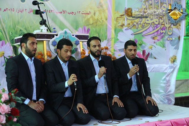 وكان لفرقة إنشاد الجوادين أداء متميز بهذه المناسبة المباركة بمجموعة من الموشحات الدينية، كما تألق الرادود الحسيني مصطفى الكناني بقصائده الجميلة، ليرسم الفرحة والبهجة والسرور في نفوس الحاضرين، وكان لعريف الحفل الرادود عبد العظيم الحسناوي إطلالة متميزة اتحفنا خلالها بأبيات الشعر الولائية التي صدحت بها حنجرته حباً وولاءً لأئمتنا الأطهار "عليهم السلام" واختتم الحفل الكريم بالدعاء إلى مجاهدي الحشد الشعبي بالعزيمة والثبات وتحقيق النصر المؤزر، وقراءة سورة الفاتحة ترحماً على أرواح شهدائنا الأبرار.
