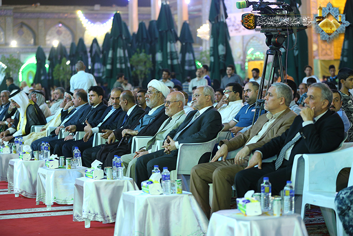 وأضاف قائلاً :"وحري بنا ونحن نعيش هذه الأيام المباركة أن نسعى جاهدين إلى توحيد الجهود، والوقوف صفاً واحداً مع مرجعيتنا الحكيمة وتلبية ندائها ومساندة أخواننا المجاهدين في الحشد الشعبي، لأن تلك الفتوى هي التي أعادت الثقة في نفوس أبناء العراق، وسنكون إن شاء الله تعالى من المحتفين والمحتفلين عندما تحرر أرضنا ونسحق الإرهاب، وترفع راية الحق خفاقة في سماء بلدنا العزيز" بعدها تألق الشاعر الأستاذ "رياض عبد الغني الكاظمي" بقصيدة رائعة عنوانها " التاريخ يتجدد" تناول فيها محطات من الولادة الكريمة ومنها هذه الأبيات:
