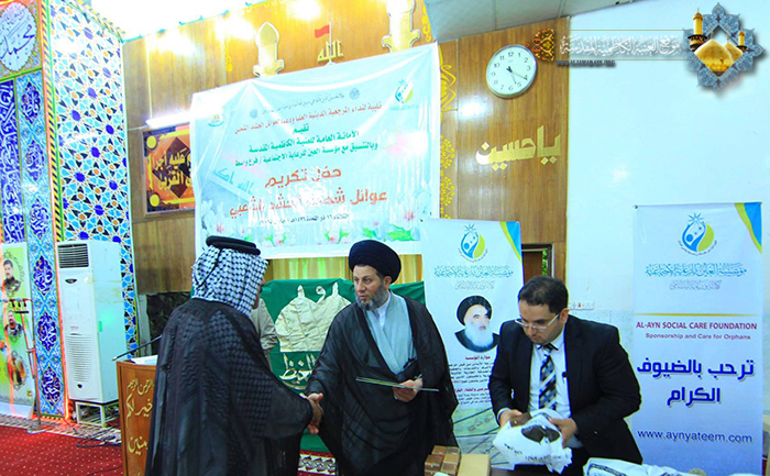 تخليداً للمواقف النبيلة والتضحيات الجسام التي قدمها شهداء العراق والمقدسات شهداء الحشد الشعبي الذين سقطوا مضرّجين بدماء الشهادة والعزّة والتضحية من أجل تراب الوطن الغالي في معاركهم ضدّ الإرهاب التكفيري، وفي خطوة مباركة من قبل الأمانة العتبة الكاظمية المقدسة تعبر عن عمق التواصل الوجداني والإنساني مع عوائل الذين خطّوا أسماءهم بأحرف من نور، وضحّوا بأنفسهم من أجل الدفاع عن حياض هذا البلد العزيز، أقيم في محافظة واسط مهرجان خاص لتكريم كوكبة من عوائل شهداء الحشد الشعبي المقدَّس، بالتعاون مع الأمانة العامة للعتبة الكاظمية المقدسة ومؤسسة العين للرعاية الاجتماعية (فرع واسط)، بحضور عضو مجلس إدارة العتبة الكاظمية المقدسة ورئيس لجنة الحشد الشعبي المهندس سعد محمد حسن ووكيل المرجعية الدينية في مدينة الكوت سماحة الشيخ سعد التميمي وعدد من الشخصيات الاجتماعية وذوي الشهداء.