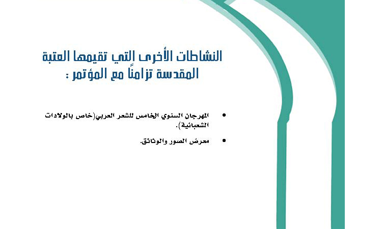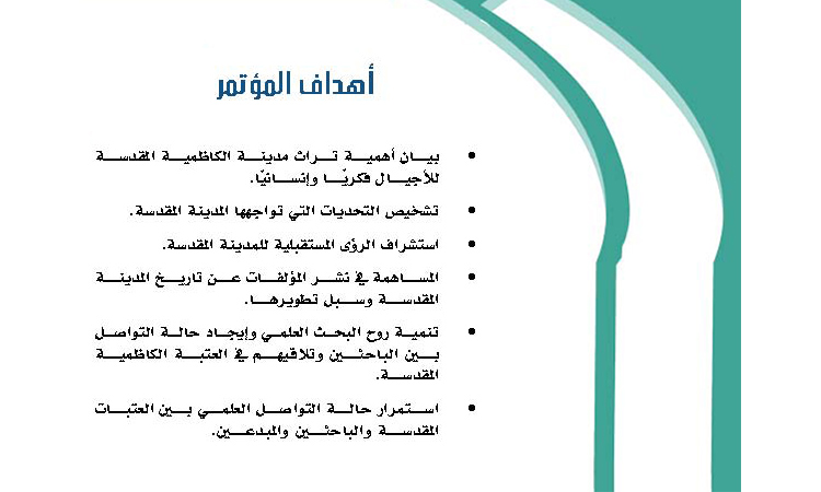 عقدت اللجنة التحضيرية للمؤتمرات والندوات العلمية في العتبة الكاظمية المقدسة سلسلة من الاجتماعات برئاسة الأمين العام للعتبة الكاظمية المقدسة أ . د جمال عبد الرسول الدباغ للتهيؤ والاستعداد لإقامة المؤتمر العلمي الدولي السنوي السابع، وتم خلال جلساته الاتفاق على أن يعقد المؤتمر هذا العام تحت شعار: ( الكاظمية المقدسة عراقة وتحديات ورؤى) والذي سيعقد للمدة من 6ـ 7 شعبان 1437هـ الموافق 13ـ 14/ آيار 2016م. ووقع اختيار هذا الشعار نظراً لأهمية مدينة الكاظمية وقداستها ومكانتها الدينية والتاريخية والاجتماعية وهي تحتضن الجسدين الطاهرين للإمامين موسى بن جعفر الكاظم ومحمد بن علي الجواد "عليهما السلام"، فضلاً عن كونها حاضرة علمية وإسلامية وثقافية انجبت الكثير من العلماء والمفكرين والأدباء الذين رفدوا الساحة العلمية بنتاجهم الغزير. كما اتفقت اللجنة التحضيرية على تسمية أ. د. جمال عبد الرسول الدباغ (رئيساً) وعضوية كل من: أ.م.د محمد حسين علي، أ.م.د ثامر جعفر الزبيدي، الشيخ عدي الكاظمي، الشيخ حسن هادي طه، السيد محمد إياد الحسيني، د. إسماعيل الجابري، المهندس عبد الكريم الدباغ، والسيد حيدر رشيد أحمد مقرراً. كما تم خلال جلسات الاجتماع مناقشة المحاور الرئيسة للمؤتمر، وتحديد شروط المشاركة. وارتأت اللجنة أن ترافق المؤتمر العلمي نشاطات ثقافية وفكرية وأدبية حيث سيقام المهرجان السنوي الخامس للشعر العربي وسيكون خاصاً بالولادات الشعبانية، فضلاً عن إقامة معرض للصور والوثائق.