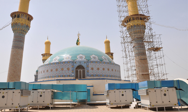 تم تنفيذ المشروع الذي بلغت كلفته (1.221.312.000) مليار دينار عراقي من قبل إحدى الشركات العراقية المتخصصة في مجال الأعمال الميكانيكية، وباستخدام تقنية عالية ومعدات من مناشىء عالمية ومواصفات تتلاءم مع أجواء المنطقة التي يطغي عليها الارتفاع الشديد في درجات الحرارة، وكذلك اعتماد المواصفات القياسية للأعمال الميكانيكية في العراق. كانت أولى خطوات المشروع تتلخص بإعداد المخططات اللازمة لنصب مثلجات الماء (الجلرات) والمسخنات (البويلرات) ودافعات الهواء ومنظومة الأنابيب ومجاري الهواء للدفع والسحب حيث صممت بشكل روعيت فيه جمالية المكان عند النصب والأداء، وبلغت السعة الكاملة للمنظومة: 405 طن، سعة الجلر الواحد: 135 طن، عدد الجلرات: 3.