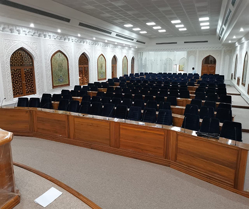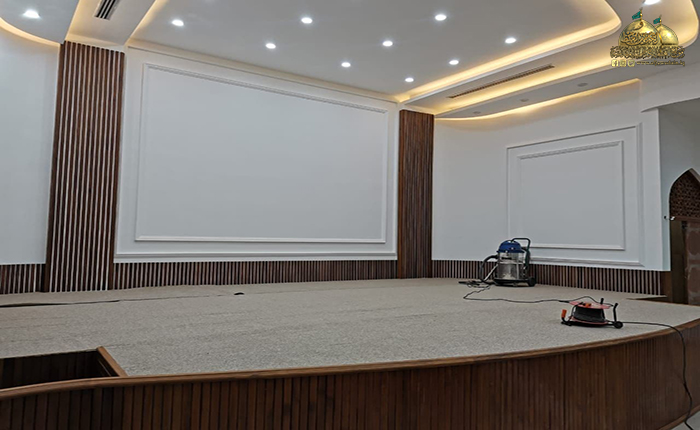 وأضاف في حديثه: إن القاعة شهدت إدامة الفضاءات الساندة ومنها الكافتيريا، والمطبخ، وقاعة الاجتماعات، فضلاً عن استحداث منظومة الترجمة الصوتية لقاعة الاجتماعات، مع إضافة شاشات عرض كبيرة ذات جودة عالية، وأيضاً تم تطوير المنظومة الصوتية والصورية، ومنظومة البث الفيديوي السابقة من قبل الملاكات الهندسية والفنية في شعبة الإعلام بالعتبة المقدسة، وانتهت الأعمال بتجديد أثاث قاعة الاجتماعات وزيادة عدد مقاعد الجلوس.