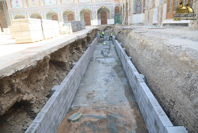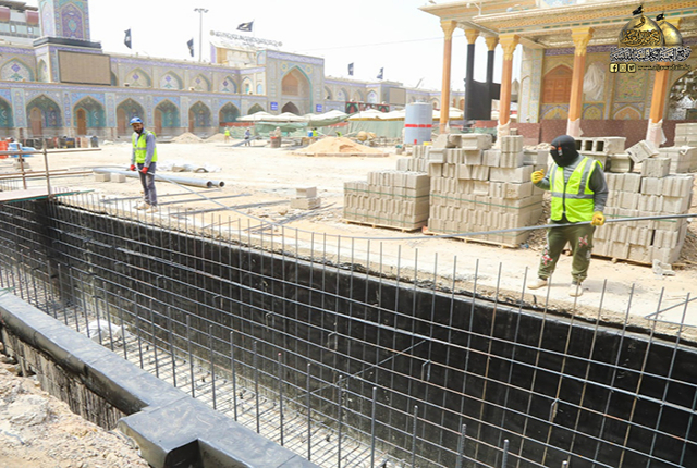 وذكر المهندس مازن كاظم نظراً لحيوية المكان ولأجل ضمان انسيابية دخول زائري الإمامين الكاظمين الجوادين "عليهما السلام" تم اعتماد تقسيم العمل وتنفيذه بمراحل عدّة حيث أن المساحة التي أتيحت للعمل في الوقت الحالي تقدر بـ(3000)م2، ونودّ أن نبيّن أن نسبة الإنجاز في أعمال البنى التحتية بلغت (18 %) مؤكداً أن الأعمال القائمة بالمشروع بجهود ذاتية وبقدرات وخبرات الملاكات الهندسية والفنية في العتبة الكاظمية المقدسة.