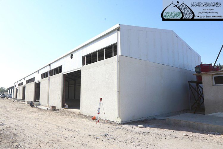 وأضاف: تم الإنتهاء من المرحلة الأولى لمشروع المخازن بنسبة (100%) بمساحة تقدّر (900م2)، بطابقين، يشتمل على قاعة كبيرة تستوعب أنواع متعددة من المخزونات، أما الطابق الثاني وهو ما تشهده المرحلة الثانية للمشروع من تقطيع للفضاءات بأعمدة ومجسرات وسقوف حديدية مخصص لتخزين الفرش والسجاد بأنواعه، وفق أحدث وسائل الخزن الحديثة، حيث سيجهز بمنظومة إنارة متكاملة، ومنظومة للإنذار والحماية من الحريق، فضلاً عن نظام التأريض والتهوية.