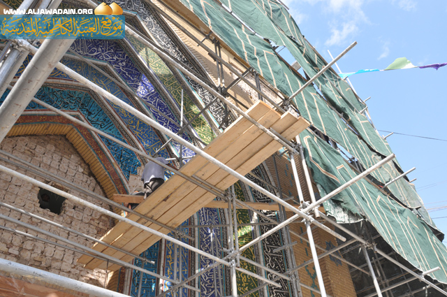 وبعد رفع التغليف عن الباب بعناية تم كشف مجموعة من التشققات في الواجهة والسطح وداخل الغرف حيث سيتم معالجة هذه التشققات والتكسرات في البناء بالطرق المناسبة مع مراعاة التجانس بالقدر الممكن بين الصيانة والبناء القديم. وبعد الانتهاء من هذه المرحلة سيتم المباشرة بصب الأسس وبناء الجدران وتغليف الواجهة للباب وحسب الشكل القديم الذي يتناسق والطراز المعماري الإسلامي في العتبة وستنجز جميع مراحل المشروع خلال ستة أشهر.